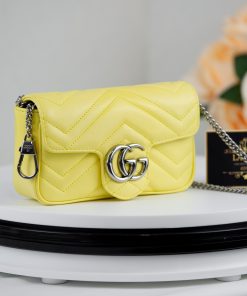 Giới thiệu: Gucci bag luôn là biểu tượng của sự xa xỉ và thời thượng. Nếu bạn đang tìm kiếm một chiếc túi hiệu nhỏ gọn, trẻ trung thì Gucci Marmon là lựa chọn cực kì đáng cân nhắc. Lớp ngoài là da mềm bóng bẩy, khâu chần tạo nên nét sang trọng. Lót trong là da lộn. Phần nắp được trang trí bằng logo GG kim loại, lấy cảm hứng từ những thiết kế di sản thời thập niên 70, có thể đeo vai hoặc tháo strap xích để cầm tay như một chiếc clutch