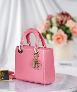 Giới thiệu: Ra mắt năm 1995, Lady Dior có nét đặc trưng với dáng hộp, quai xách đính rời thân túi bằng móc kim loại. Dòng túi này được nhà thiết kế Christian Dior lấy cảm hứng từ hoa văn trên ghế của hoàng đế Napoleon III và mặt sau chiếc ghế bành của vua Louis XVI. Qua nhiều năm, Lady Dior được sản xuất với nhiều kích cỡ và phiên bản khác nhau nhưng vẫn giữ nguyên kiểu quai và dáng hình hộp đặc trưng. – Dây đeo vai rộng, có thể điều chỉnh và tùy chỉnh với ba huy hiệu đi kèm. Dây đeo vai có thể chứa tổng cộng