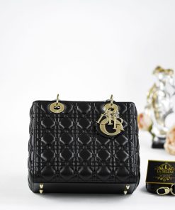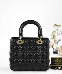 Giới thiệu: Ra mắt năm 1995, Lady Dior có nét đặc trưng với dáng hộp, quai xách đính rời thân túi bằng móc kim loại. Dòng túi này được nhà thiết kế Christian Dior lấy cảm hứng từ hoa văn trên ghế của hoàng đế Napoleon III và mặt sau chiếc ghế bành của vua Louis XVI. Qua nhiều năm, Lady Dior được sản xuất với nhiều kích cỡ và phiên bản khác nhau nhưng vẫn giữ nguyên kiểu quai và dáng hình hộp đặc trưng. – Dây đeo vai rộng, có thể điều chỉnh và tùy chỉnh với ba huy hiệu đi kèm. Dây đeo vai có thể chứa tổng cộng sáu huy hiệu.