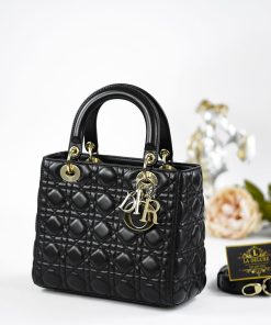 Giới thiệu: Ra mắt năm 1995, Lady Dior có nét đặc trưng với dáng hộp, quai xách đính rời thân túi bằng móc kim loại. Dòng túi này được nhà thiết kế Christian Dior lấy cảm hứng từ hoa văn trên ghế của hoàng đế Napoleon III và mặt sau chiếc ghế bành của vua Louis XVI. Qua nhiều năm, Lady Dior được sản xuất với nhiều kích cỡ và phiên bản khác nhau nhưng vẫn giữ nguyên kiểu quai và dáng hình hộp đặc trưng. – Dây đeo vai rộng, có thể điều chỉnh và tùy chỉnh với ba huy hiệu đi kèm. Dây đeo vai có thể chứa tổng cộng sáu huy hiệu.